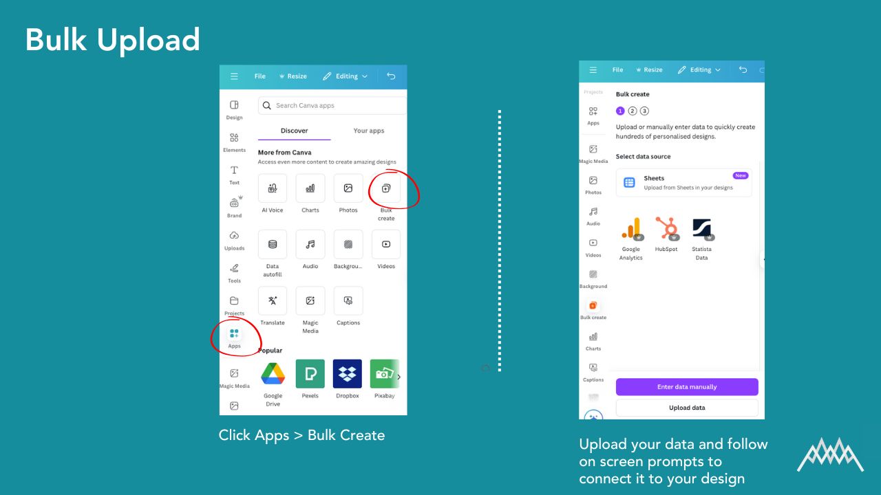 - In Canva, click Apps > Bulk Create.